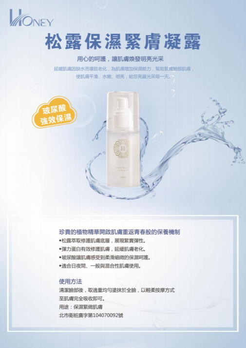 珍貴的植物精華啟動肌膚重返青春的保養機制,松露萃取修護肌膚底層,維持緊實彈性。彈力蛋白加強修護肌膚,延緩肌膚老化。玻尿酸讓肌膚感受到柔滑細緻的保濕呵護,適合日夜間、一般與混合性肌膚使用。 100ml